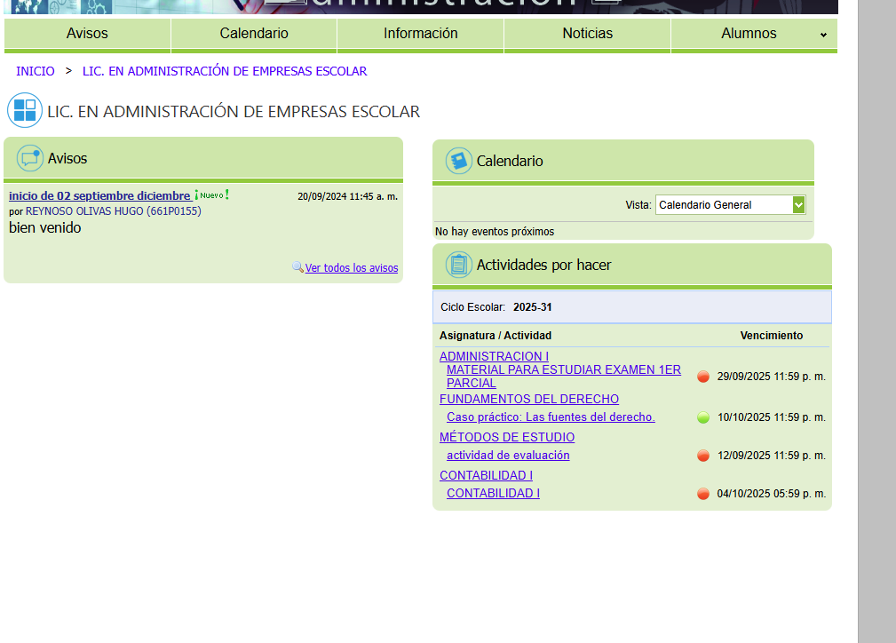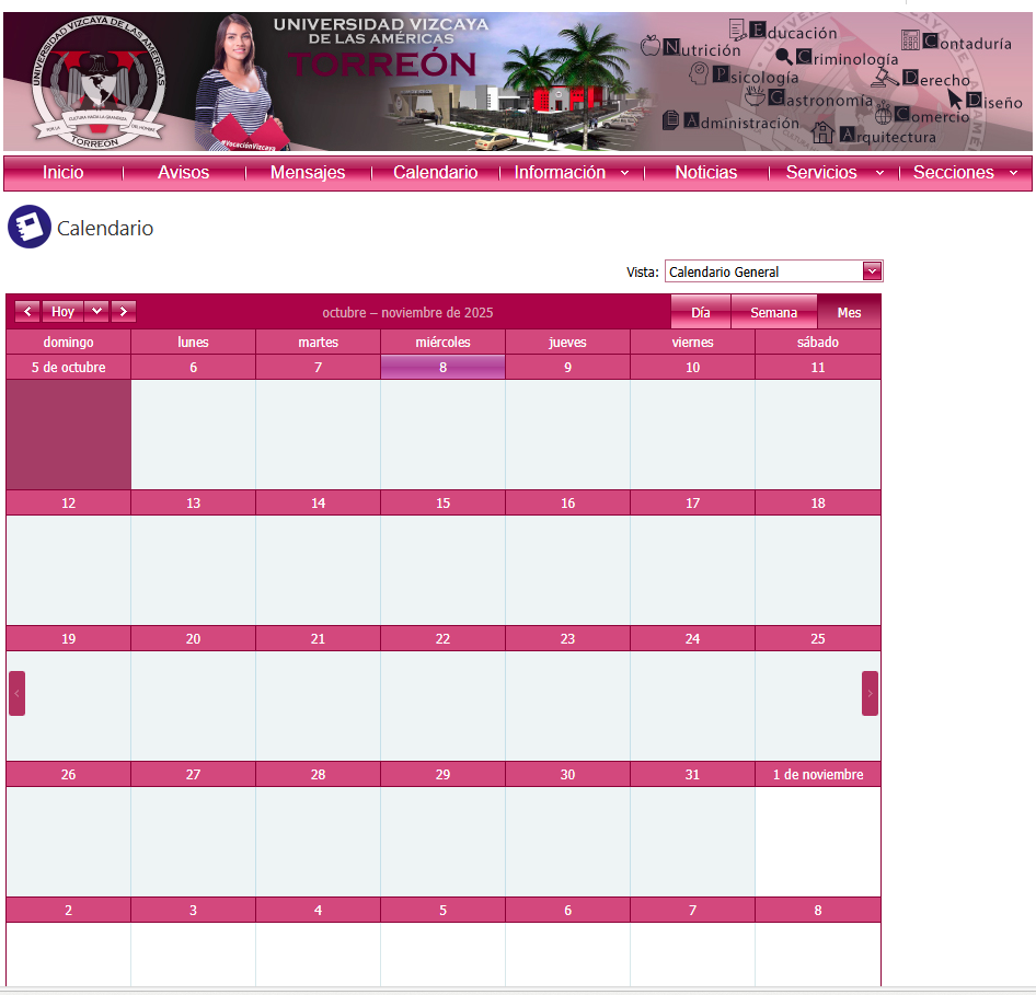 Avisos: Son anuncios que proporciona la Universidad para que los alumnos estén enterados